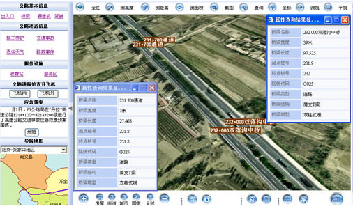 利用該功能模塊可使養(yǎng)護(hù)部門根據(jù)養(yǎng)護(hù)計(jì)劃對(duì)養(yǎng)護(hù)路段進(jìn)行相關(guān)數(shù)據(jù)添加,三維地圖上及時(shí)對(duì)應(yīng)顯示出公路養(yǎng)護(hù)狀況(橋梁、路面管理情況等),展現(xiàn)給管理部門和公眾。