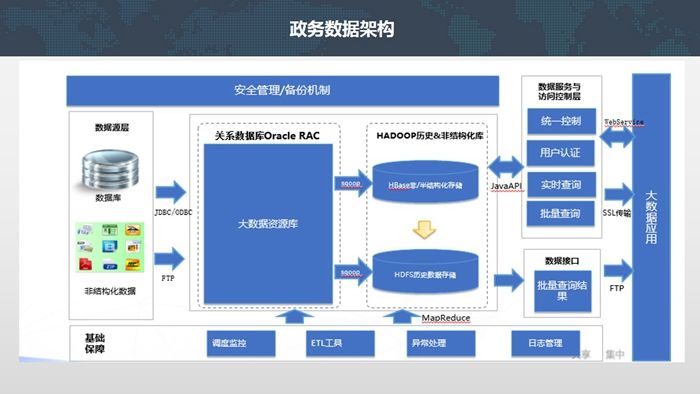 基于大數(shù)據(jù)的政務(wù)信息資源綜合利用平臺(tái)構(gòu)建了統(tǒng)一的政務(wù)及社會(huì)公共信息資源平臺(tái),平臺(tái)整合的信息資源涵蓋政務(wù)信息資源和與城市、企業(yè)、市民相關(guān)的社會(huì)公共信息資源。平臺(tái)支持從數(shù)據(jù)采集、處理、存儲(chǔ)、管理到分析、利用的全業(yè)務(wù)過程。